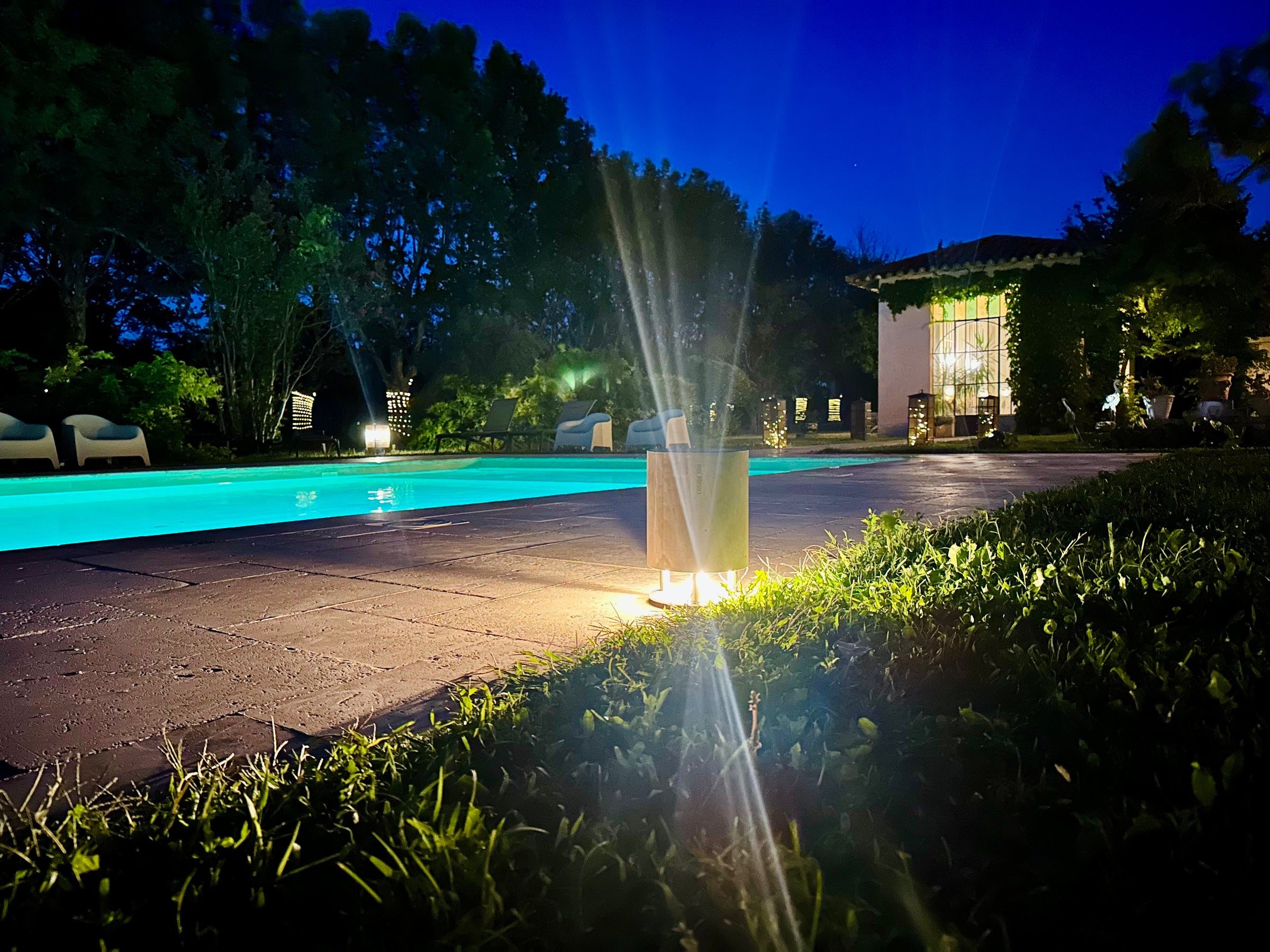 The concrete mini v2 is both speaker and light at the same time. The warm white LED can be connected via 12v or 24v.